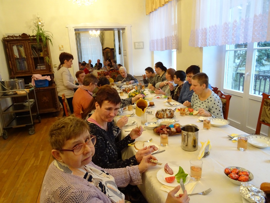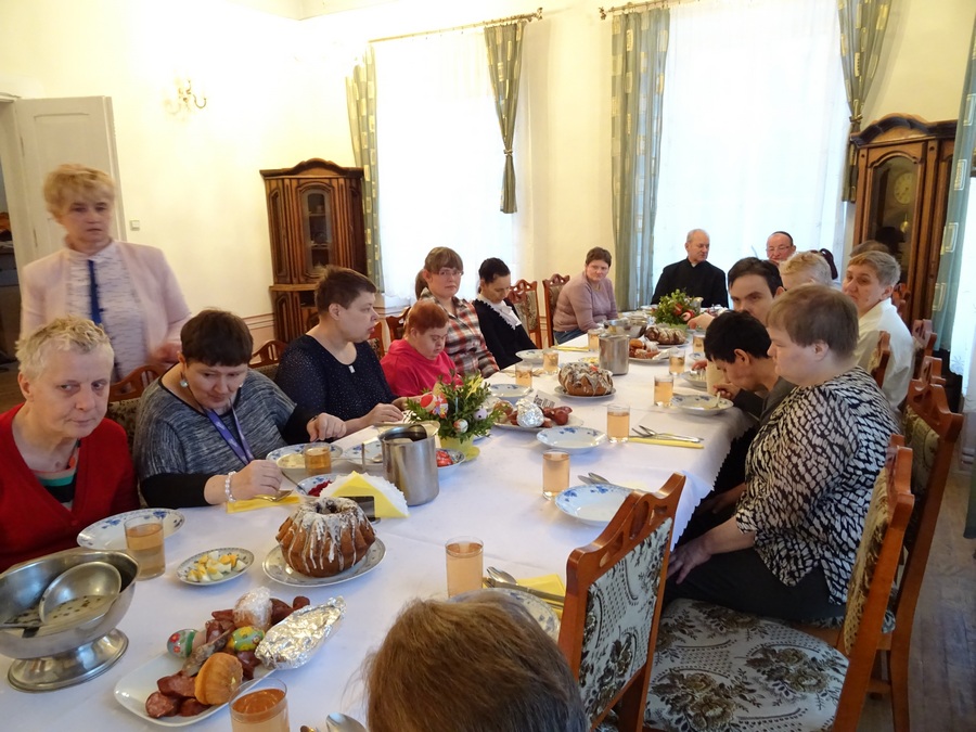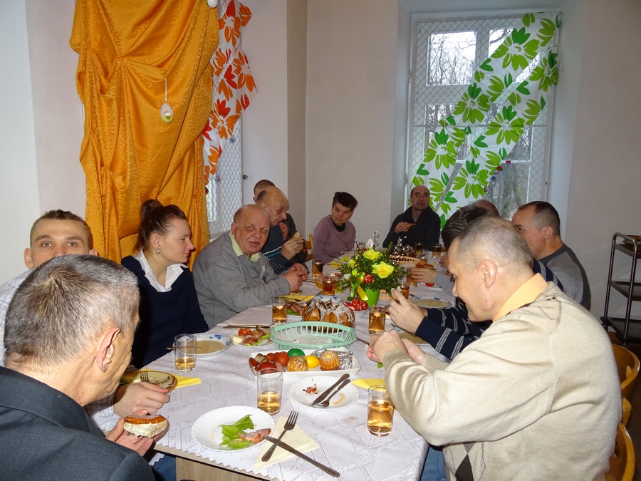 Przed świętami w każdym domu trwają przygotowania. Tak również jest w Domu Pomocy Społecznej: dekoracja koszyczków, stołów Wielkanocnych ostatnie porządki. Kiedy wszystko już gotowe mieszkańcy wyruszają w Wielką Sobotę do Świetlicy Wiejskiej gdzie wspólnie z mieszkańcami wsi święcą pokarmy na Wielkanocne Śniadanie.