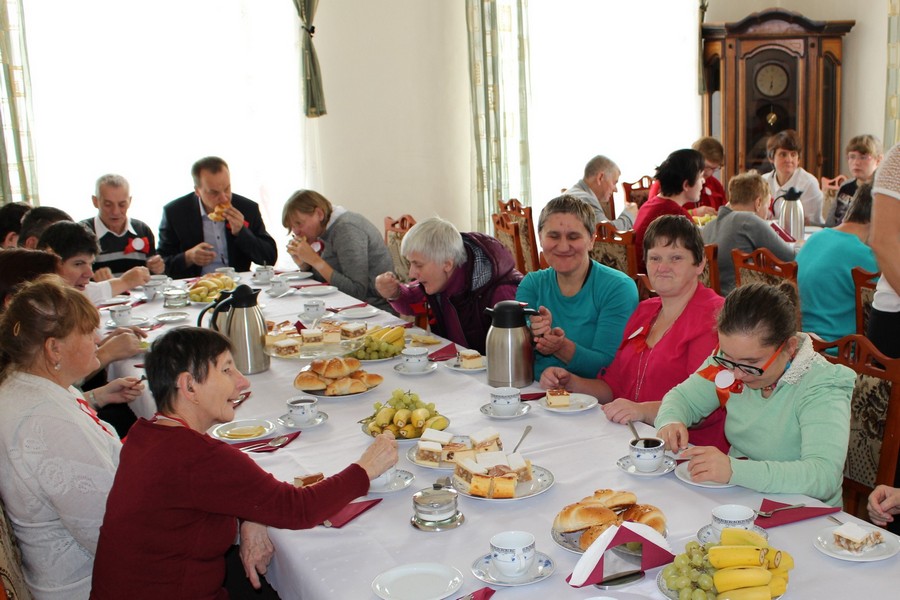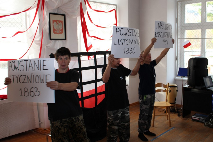 Sala gimnastyczna ubrana została w biało czerwone barwy i wypełniła się mieszkańcami DPS Szarocin oraz gośćmi z DPS Jaskulin. Każdy otrzymał wykonany kotylion.