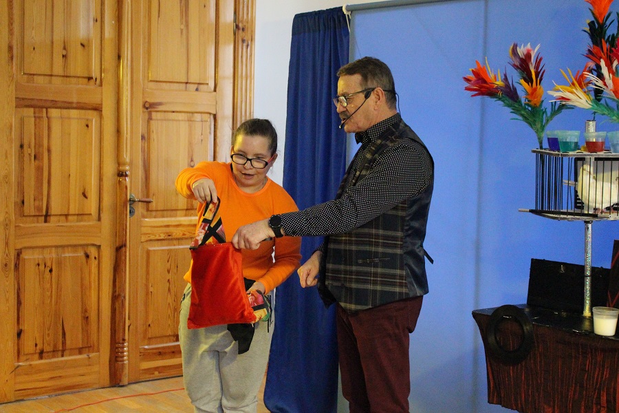 Dnia 13.04.2023 r. w Domu Pomocy Społecznej w Szarocinie odbył się interaktywny program iluzjonistyczny w wykonaniu Pana Juliusza Popiela.