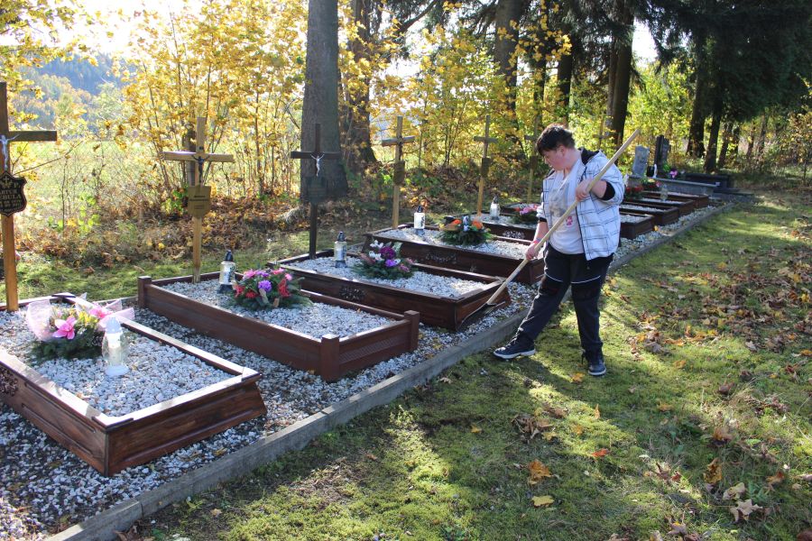 Panie i Panowie z naszego domu bardzo chętnie pomagali w porządkach na cmentarzu w Leszczyńcu. W dzień zaduszny z kolei nasi mieszkańcy odwiedzili cmentarze w Kamiennej Górze, gdzie mogli pomodlić się nad grobami bliskich i znajomych oraz zapalić znicze. Pozostała część osób mogła natomiast wsiąść udział we Mszy Świętej odprawianej na terenie DPS tak jak w pozostałe święta i niedziele.