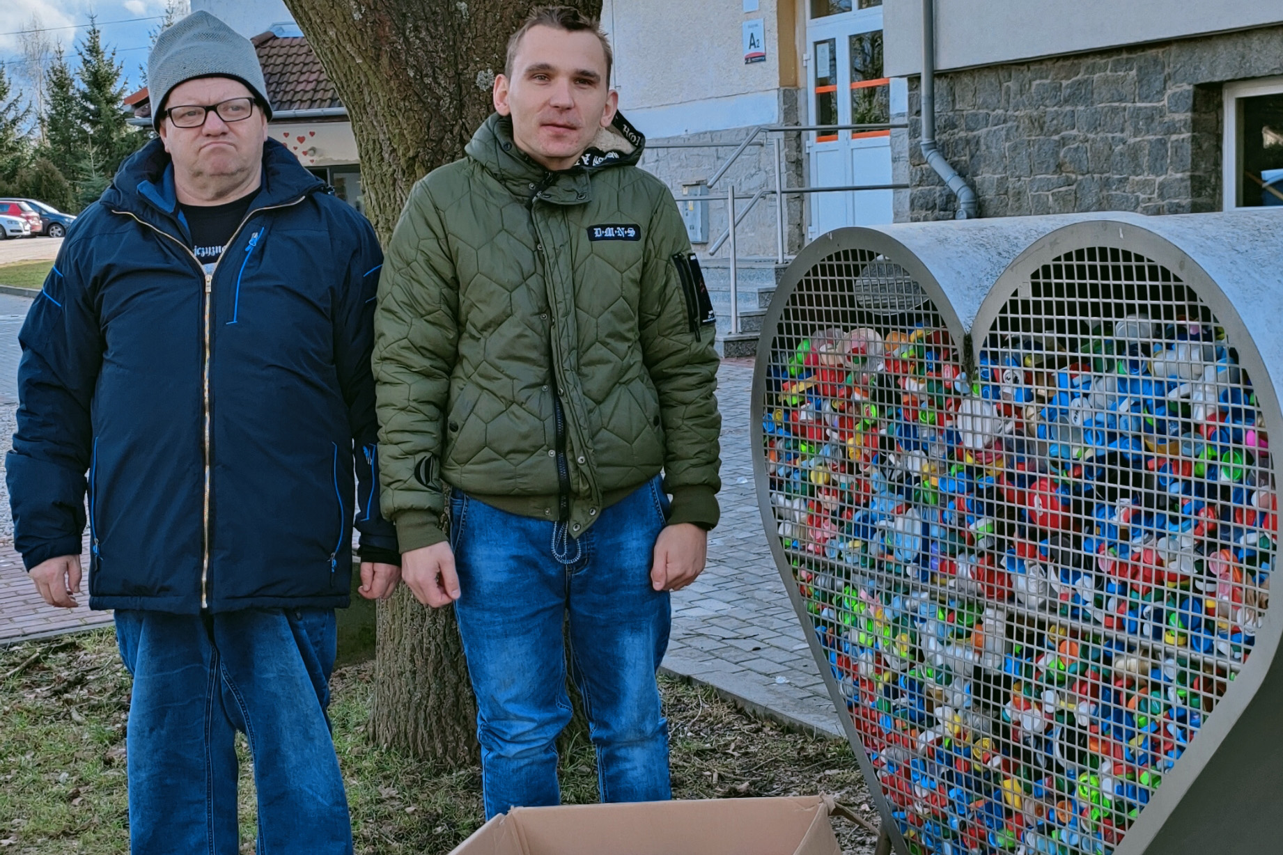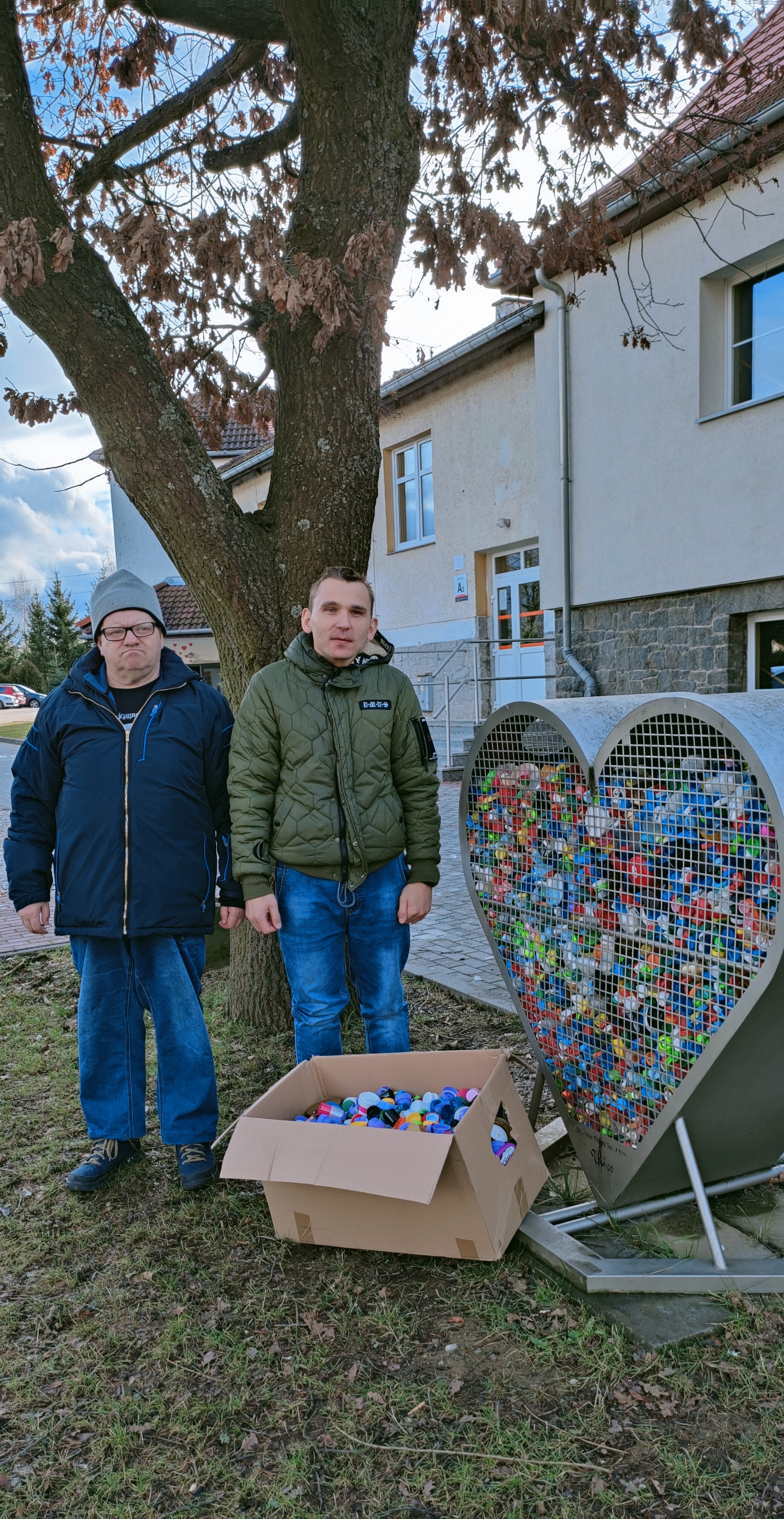 Dwa kartony nakrętek przez nas zebranych nie zmieściłyby się do już pełnego serduszka w Pisarzowicach, ale jakoś sobie poradziliśmy.