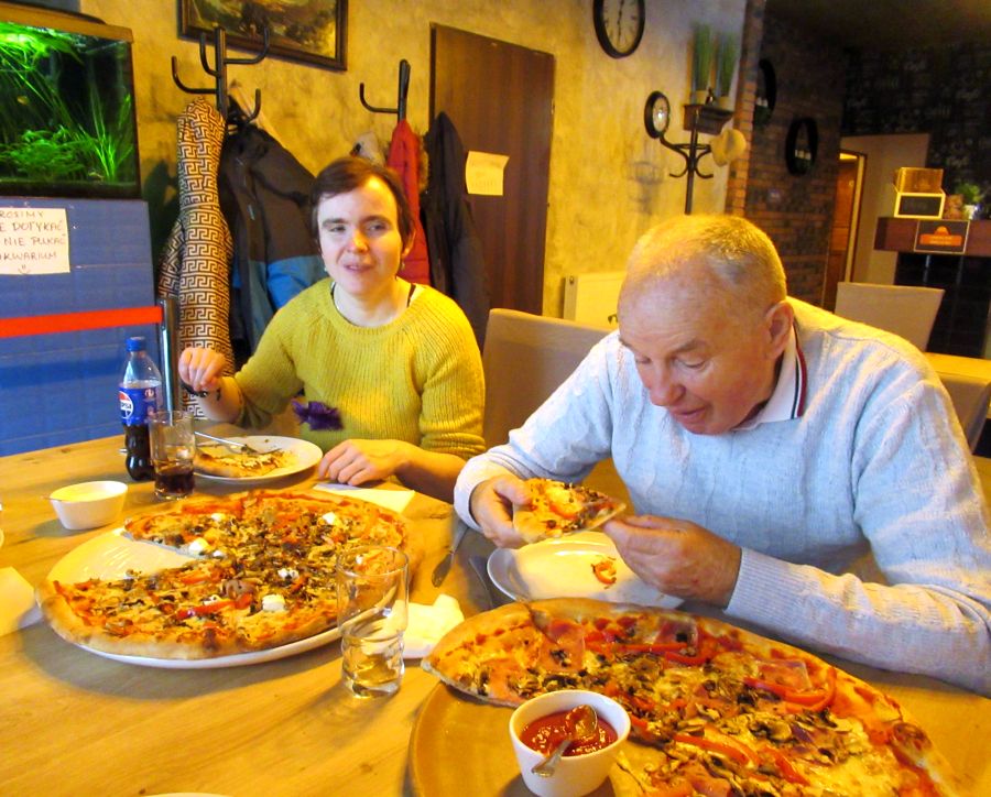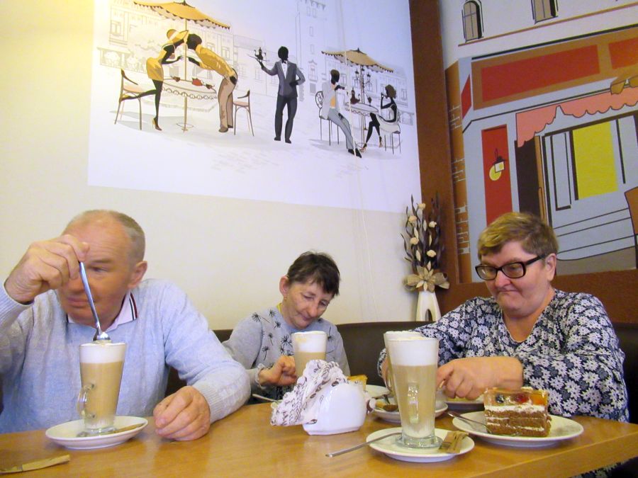 Podczas ostatniego wyjścia na miasto nasi mieszkańcy oprócz standardowego już posiłku w Pizzerii Rodos i deserku w Piekarni-Cukierni Przydrożna postanowili zwiedzić wnętrza Ratusza będącego siedzibą Urzędu Miasta Kamienna Góra. Jak widać zabytkowe wnętrza, a zwłaszcza witraże spodobały się zwiedzającym a sala witrażowa „w której można wziąć ślub” rozbudziła wyobraźnię.