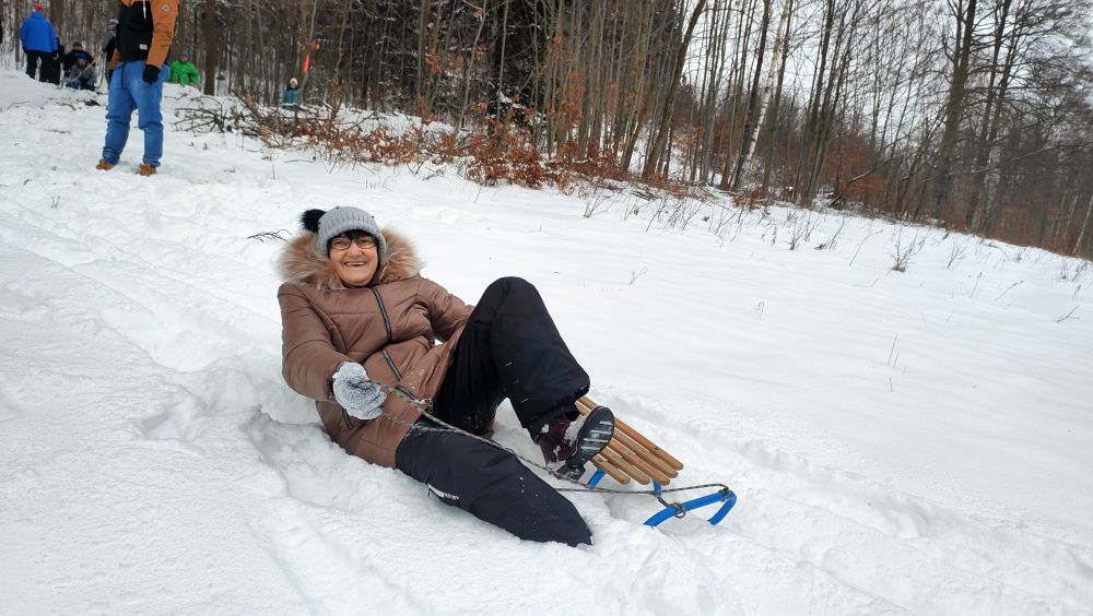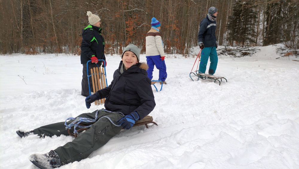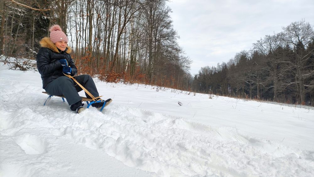 W dniu dzisiejszym udało nam się skorzystać ze śnieżnej pogody i pierwszy raz w tym sezonie wyjść na sanki. Spacer i ruch ma świeżym powietrzu to coś co lubimy najbardziej.