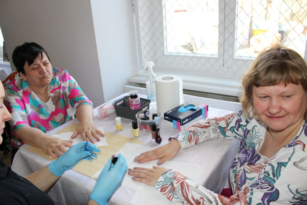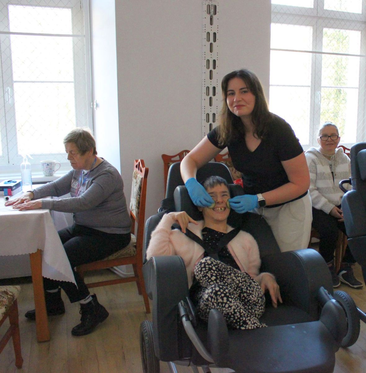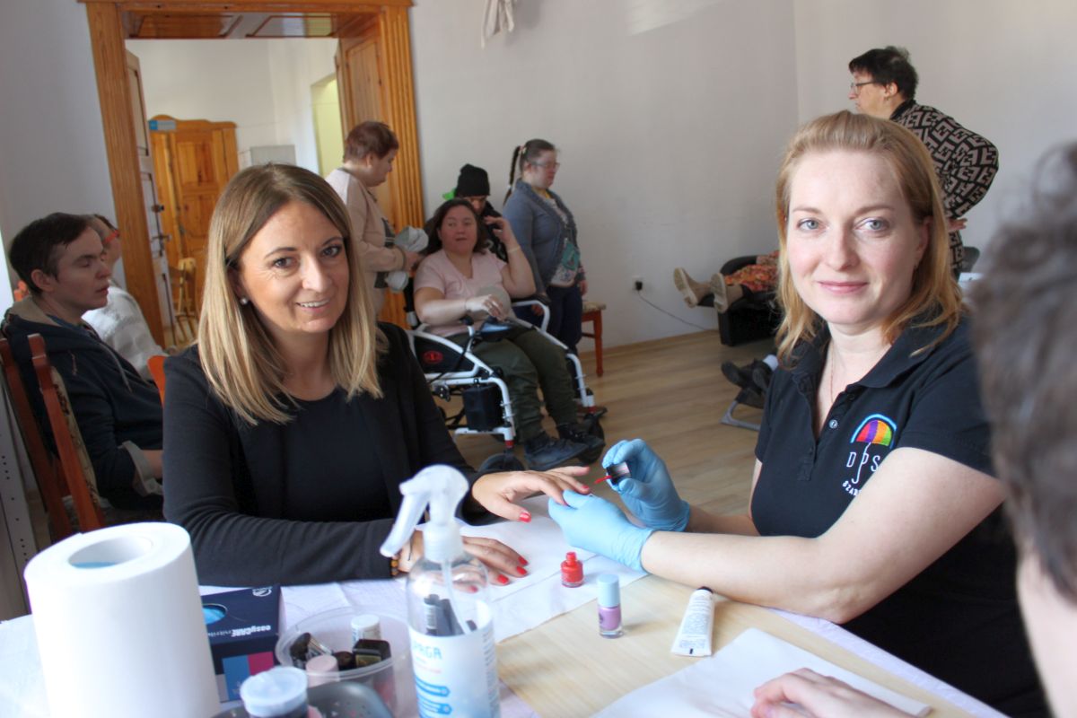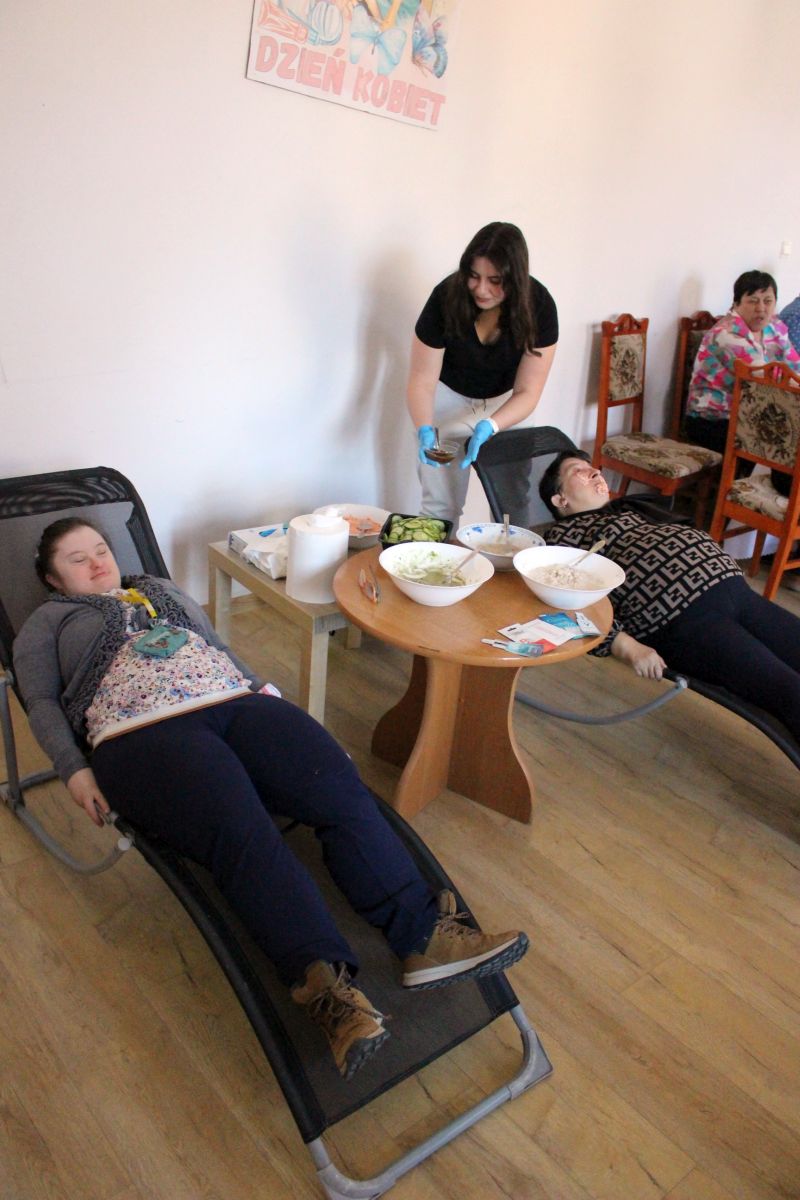 Z okazji Dnia Kobiet nasza sala gimnastyczna zamieniła się w Salon Piękności, gdzie wszystkie Panie mogły skorzystać z różnego rodzaju zabiegów upiększających. Mieszkanki chętnie korzystały ze strefy relaksu gdzie nasze terapeutki oferowały masaż relaksacyjny oraz drobny poczęstunek przy muzyce relaksacyjnej. Największą popularnością jednak cieszyła się strefa piękna gdzie ustawiała się kolejka na zabiegi upiększające na twarz, kolorowy manicure oraz stylizację fryzur. Wiemy, że powrót do takiej formy świętowania Dnia Kobiet był strzałem w dziesiątkę.