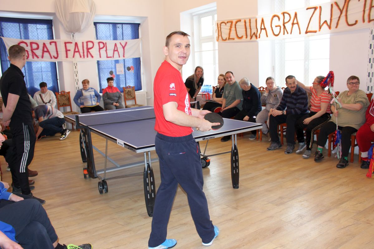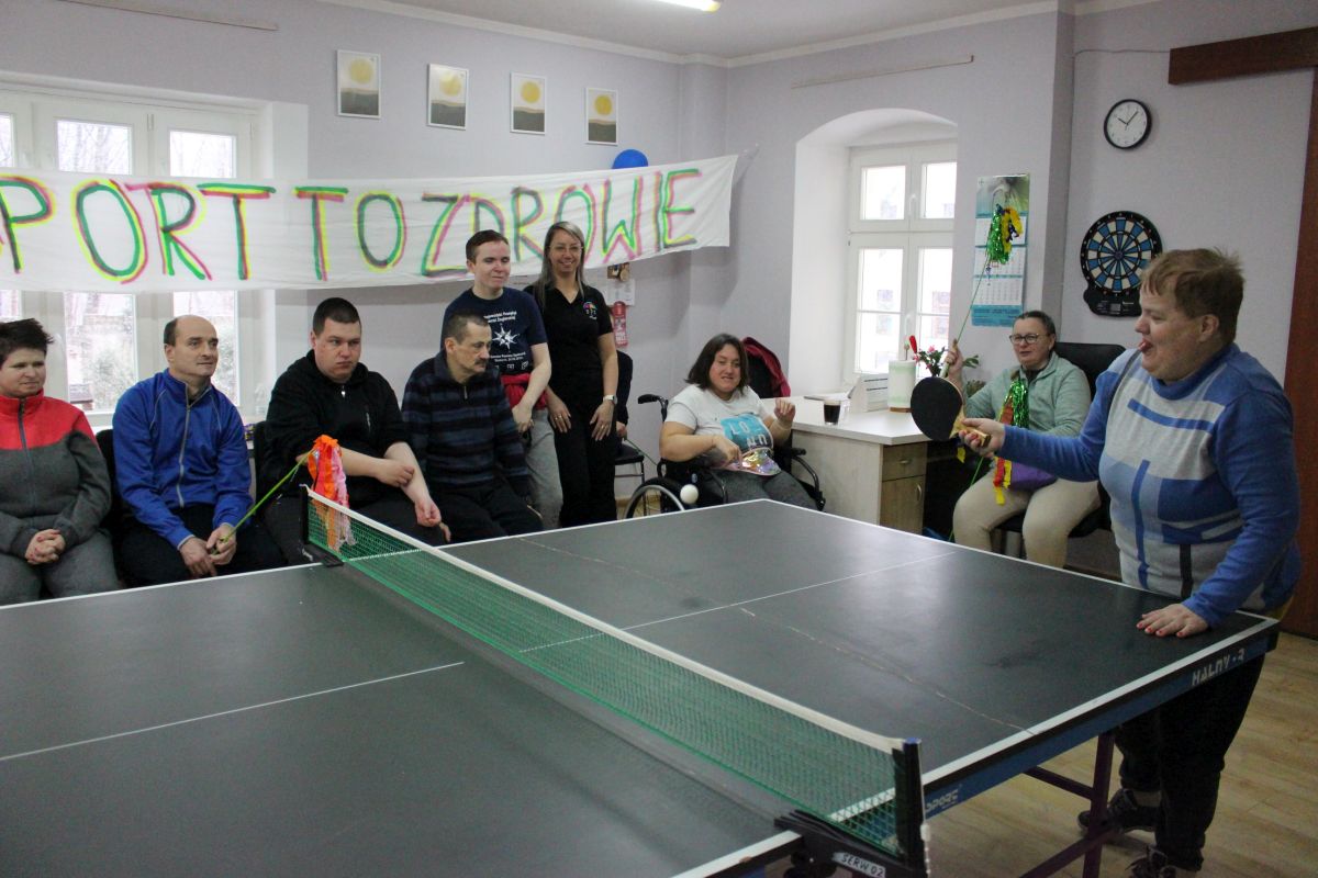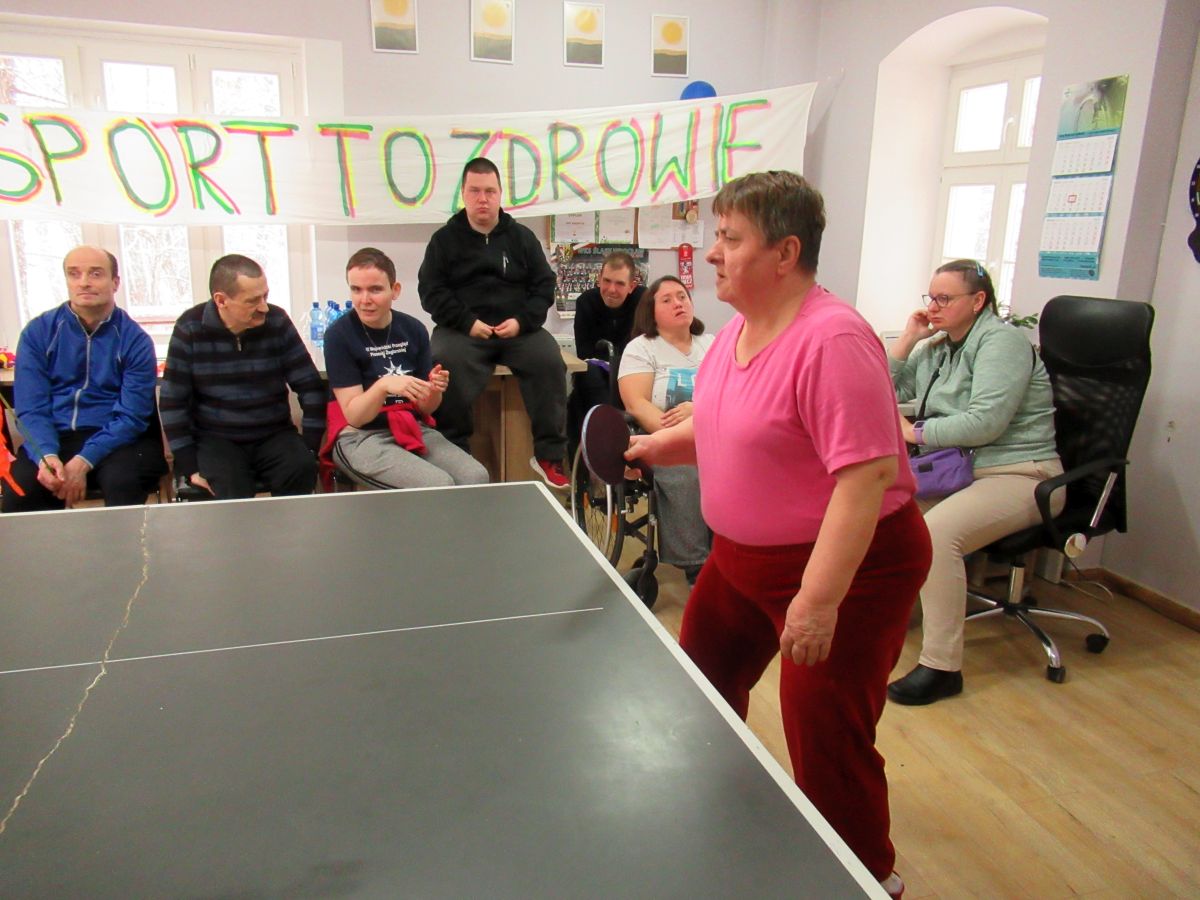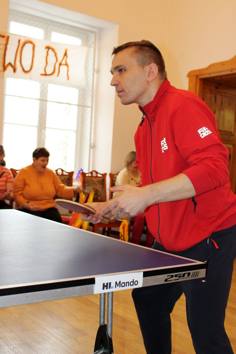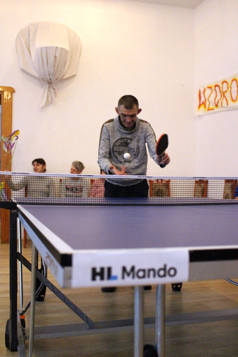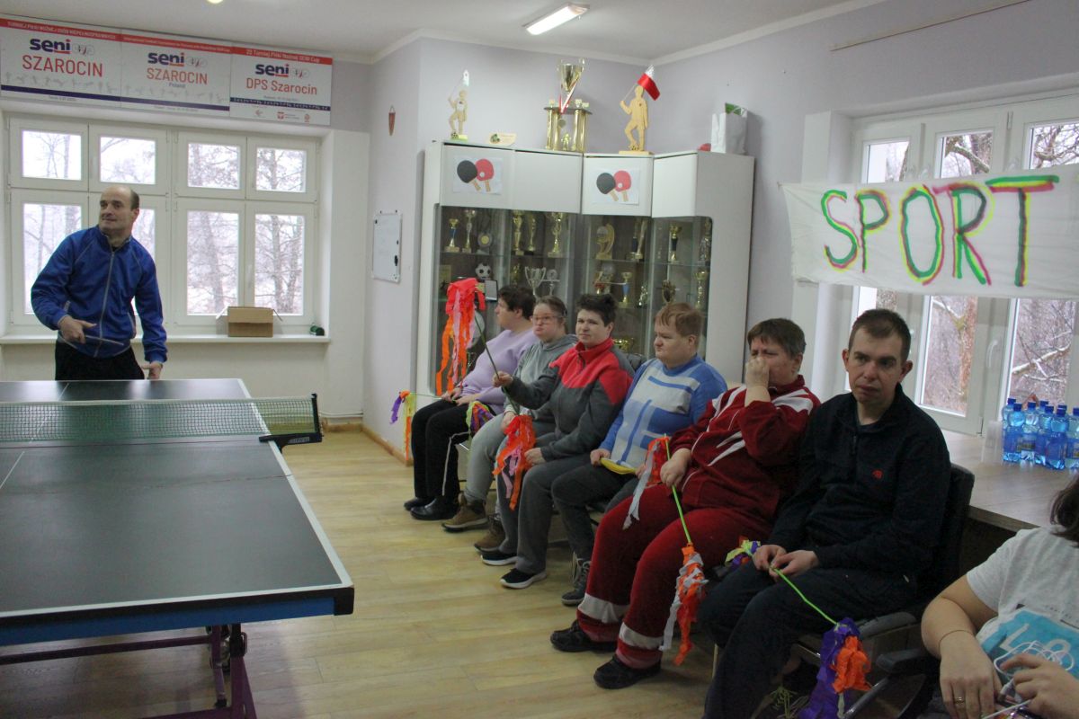 W dniu dzisiejszym w naszym Domu odbyły się kolejne pełne emocji zawody sportowe, które z przyjemnością otworzyła Pani Dyrektor zachęcając wszystkich do uczciwej gry. Zawodnicy w dwóch grupach walczyli o najwyższe podium XIV Zawodów Tenisa Stołowego DPS Szarocin 2025. W pierwszej grupie po widowiskowej grze na podium stanęli kolejno Panowie: Paweł H., Dariusz K. i Marcin M.. W drugiej grupie podium wywalczyli: Pani Ewa G., Pan Grzegorz S. i Pani Brygida Zmarzlik. Gratulujemy zawodnikom i liczymy na kolejne sukcesy podczas zawodów Olimpiad Specjalnych. Dziękujemy firmie HL MANDO za użyczenie stołu do tenisa stołowego na ten dzień.