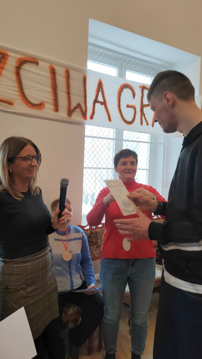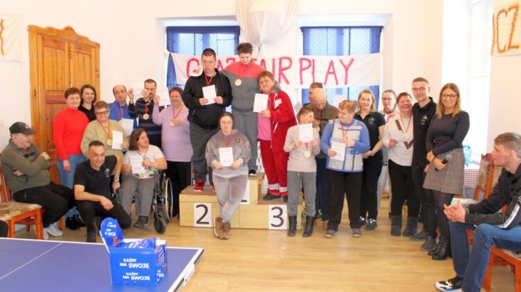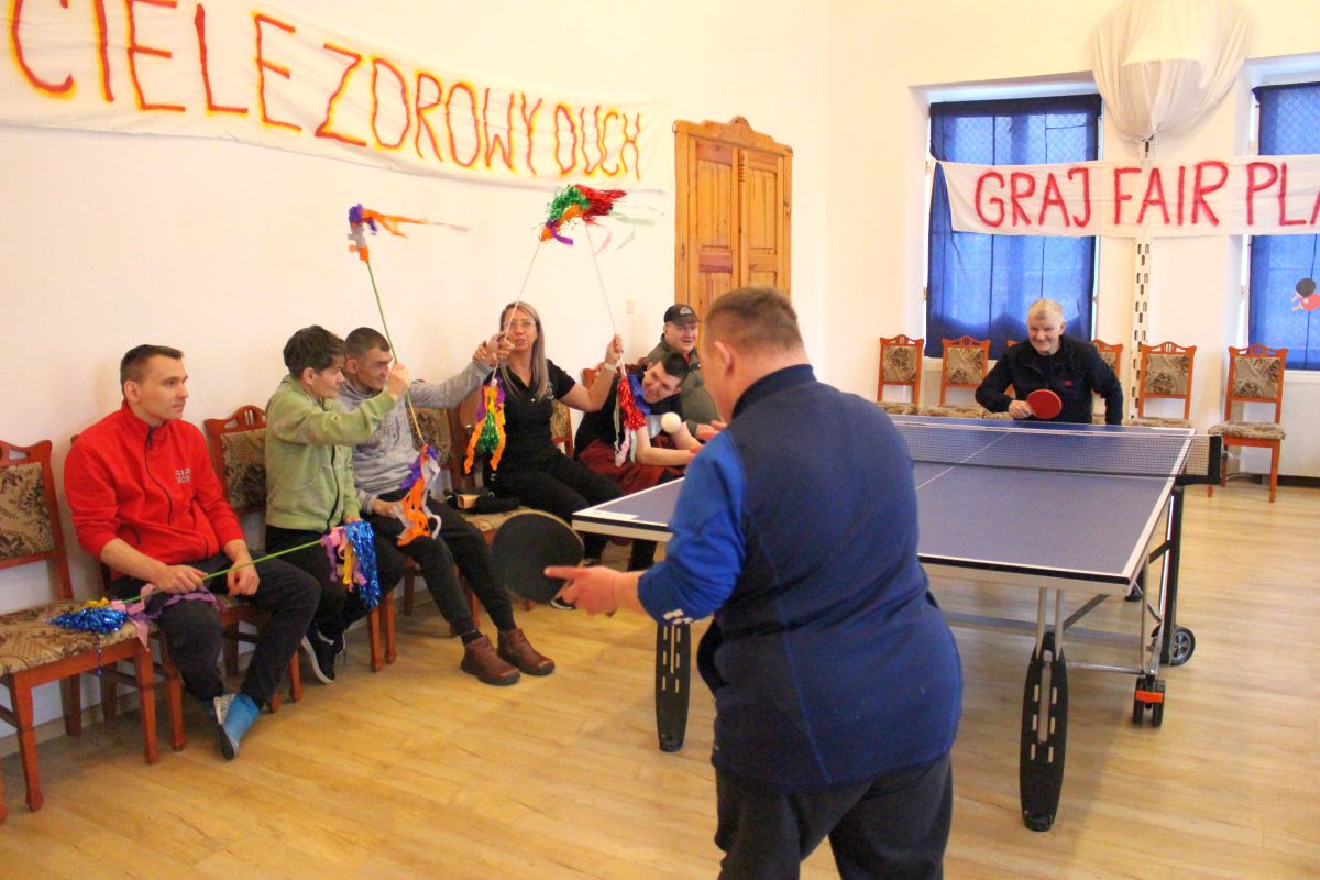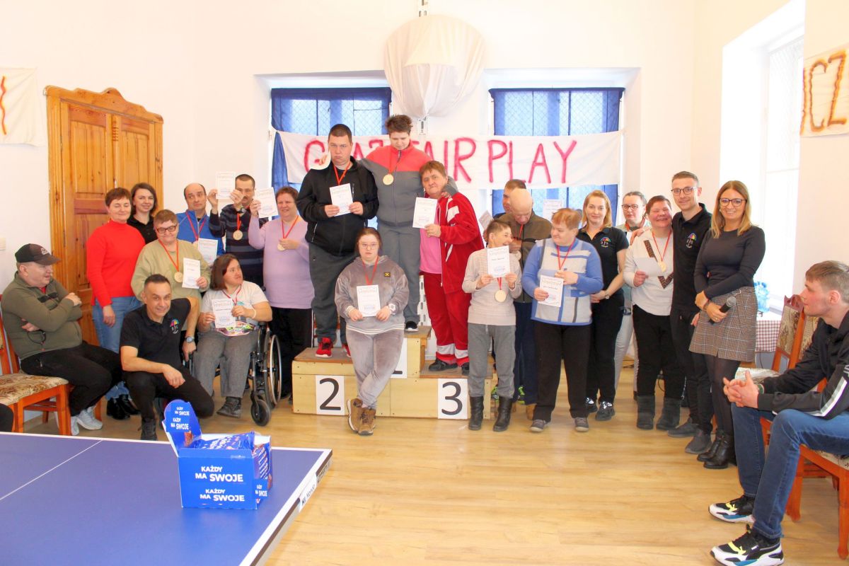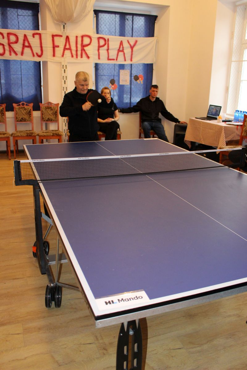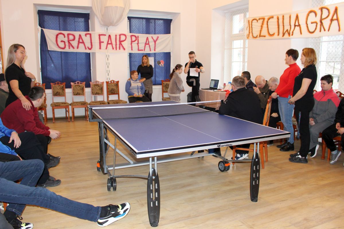 W dniu dzisiejszym w naszym Domu odbyły się kolejne pełne emocji zawody sportowe, które z przyjemnością otworzyła Pani Dyrektor zachęcając wszystkich do uczciwej gry. Zawodnicy w dwóch grupach walczyli o najwyższe podium XIV Zawodów Tenisa Stołowego DPS Szarocin 2025. W pierwszej grupie po widowiskowej grze na podium stanęli kolejno Panowie: Paweł H., Dariusz K. i Marcin M.. W drugiej grupie podium wywalczyli: Pani Ewa G., Pan Grzegorz S. i Pani Brygida Zmarzlik. Gratulujemy zawodnikom i liczymy na kolejne sukcesy podczas zawodów Olimpiad Specjalnych. Dziękujemy firmie HL MANDO za użyczenie stołu do tenisa stołowego na ten dzień.