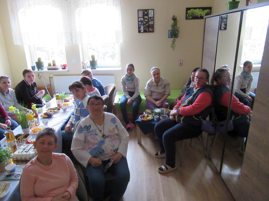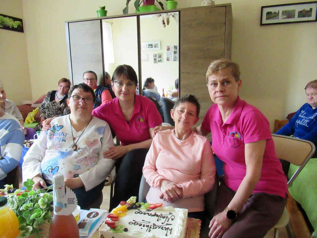 Gromkie Sto lat! dla Pani Józefy z okazji jubileuszu 60-urodzin, a także najserdeczniejsze życzenia urodzinowe dla nieco starszej Pani Tereski. Nasze mieszkanki zwyczajowo, obchodząc urodziny, są często zobowiązane do samodzielnych przygotowań, na miarę ich możliwości, i tym razem Panie spisały się świetnie. Uśmiechy dopisały, a Panie Opiekunki dopięły drobne szczegóły do całości.