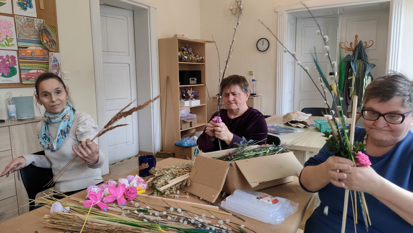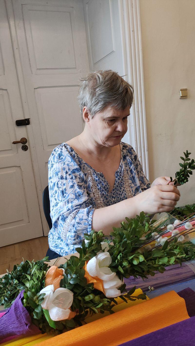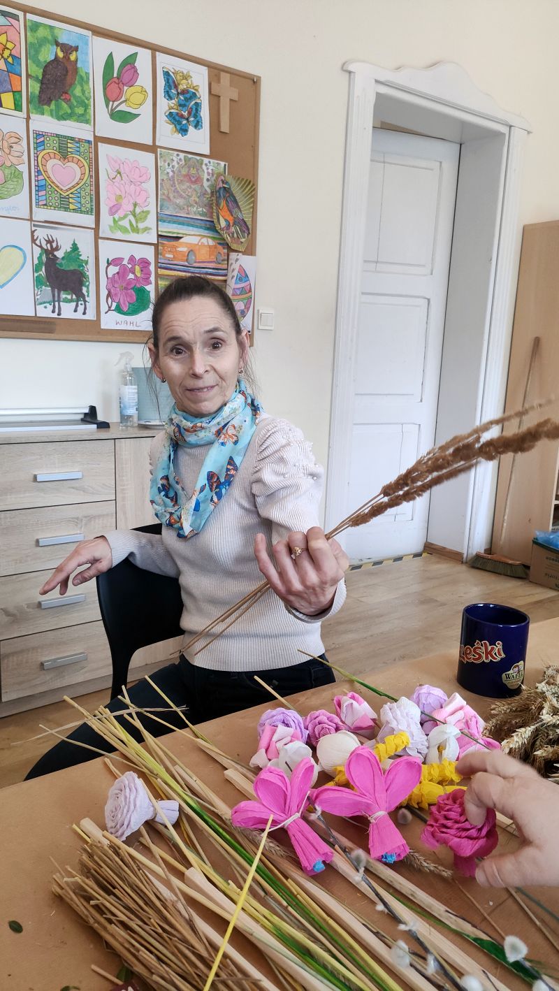 Tak jak zawsze przed Świętami Wielkanocnymi na naszych terapiach zajęciowych bardzo dużo się dzieje. Do palm potrzeba kwiatuszków, do kartek zajączków, do stroików pisanek i uszastych pików do ozdoby. Będzie kolorowo i tradycyjnie. A prace będzie można podziwiać podczas najbliższych wydarzeń o tematyce wielkanocnej w okolicy.