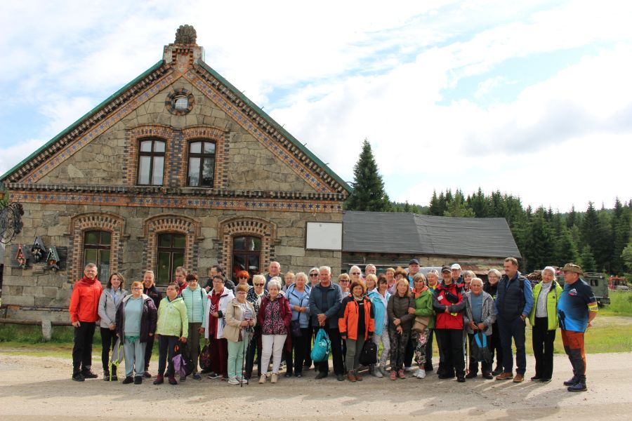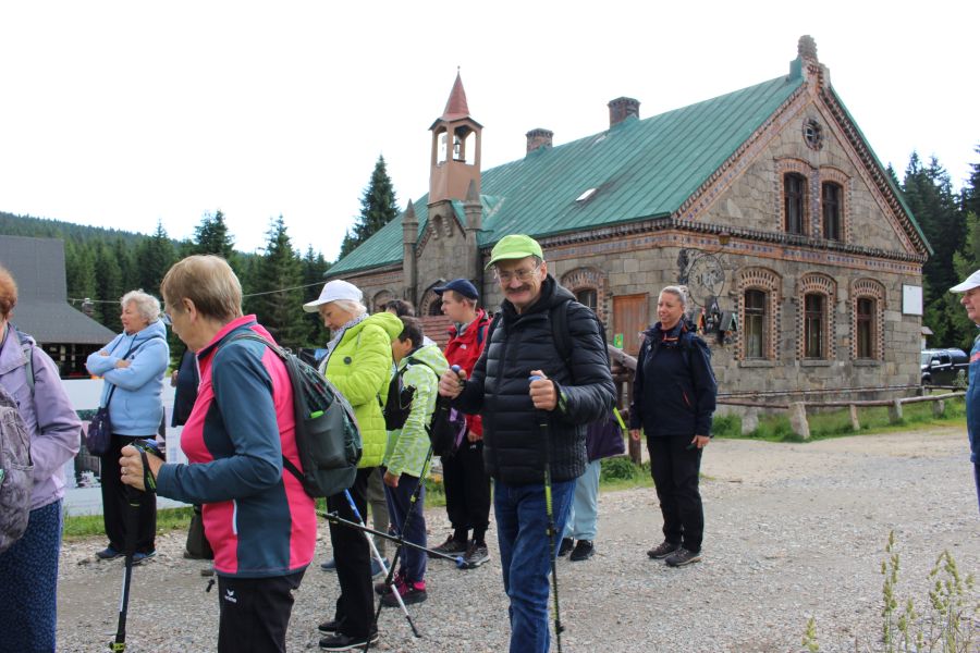 W dniu wczorajszym po raz kolejny mieszkańcy DPS Szarocin mieli okazję wziąć udział w rajdzie po Górach i Pagórkach organizowanej przez Karkonoski klub Seniora i Wolontariusza oraz Karkonoski Sejmik Osób Niepełnosprawnych. Tym razem bazą i celem pieszej wędrówki były Jakuszyce – Stacja Orle i okoliczne szlaki. Dużą atrakcją okazała się możliwość przekroczenia granicy z Republiką Czeską. Z zapartym tchem mieszkańcy podziwiali również wystawę z unikatowymi na skalę światową eksponatami „Magicznego świata szkła i minerałów” pokazujących kulturalne i biologiczne bogactwo okolicy Sudetów. Pogoda jak i miejscowa Flora pokazała się z najlepszej strony. Miło było poznać też aktualnego zarządcę Stacji Orle, który zwraca się z apelem o pomoc dobrych ludzi pod adresem: https://www.petycjeonline.com/petycja_w_obronie_stacji_turystycznej_orle
