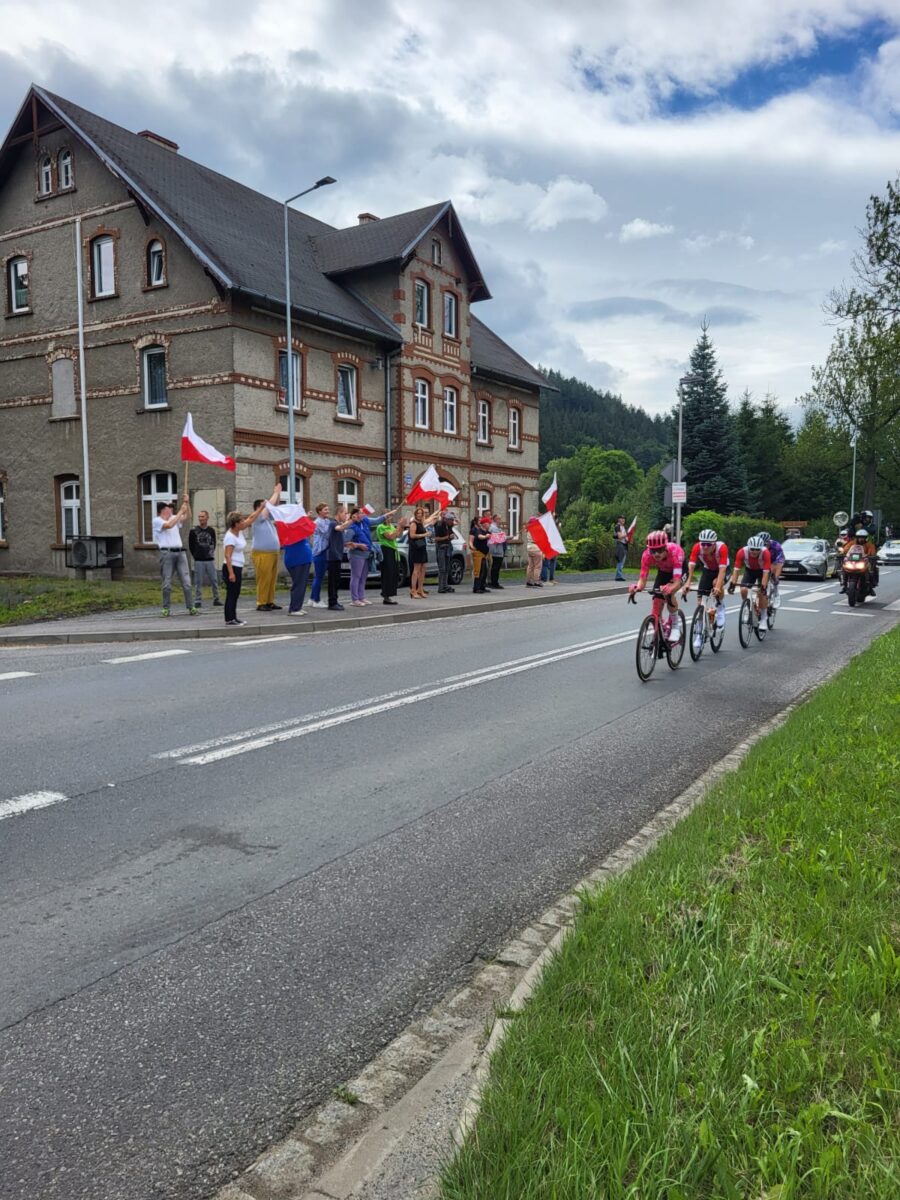 Mieszkańcy Domu Pomocy Społecznej w Szarocinie z radością uczestniczyli w wyjątkowym wydarzeniu – wyszli na główną drogę w miejscowości, by kibicować kolarzom przejeżdżającym w ramach Tour de Pologne. Uzbrojeni w biało-czerwone flagi, z uśmiechami i entuzjazmem, wspierali zawodników, tworząc niezapomnianą atmosferę sportowego święta.