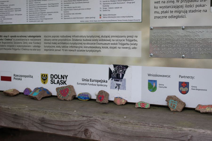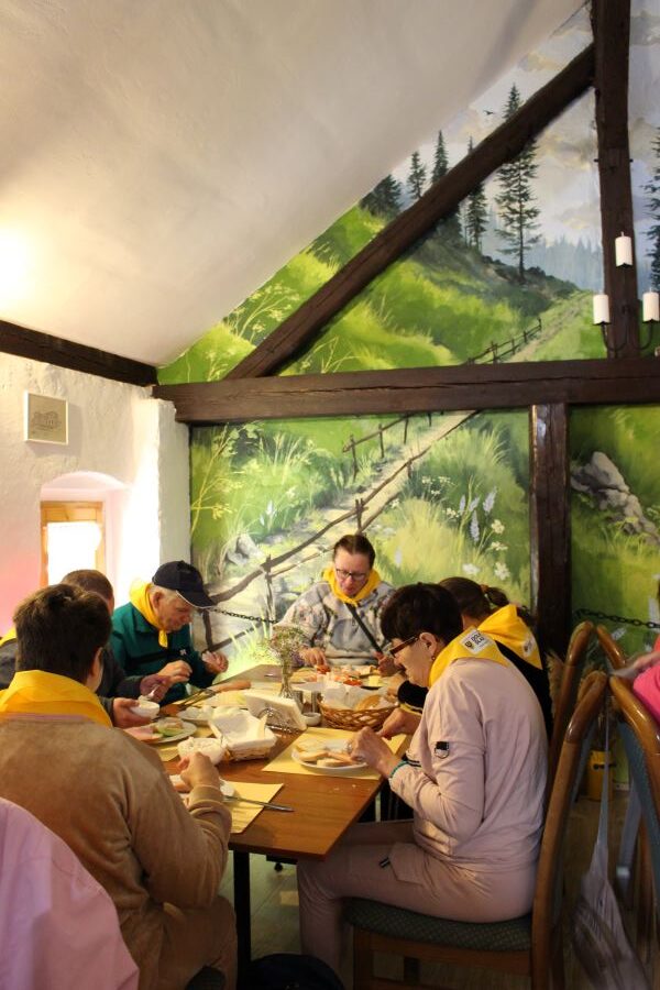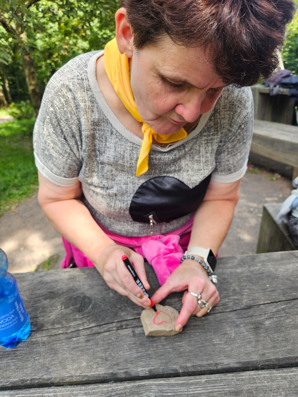 Dopisała zarówno pogoda, jak i humory – piękne, rozległe widoki oraz pyszny posiłek w klimatycznej „Stodole Dzika” były miłym dopełnieniem górskiej wędrówki. Dla urozmaicenia rajdu nasza grupa wzięła udział w kreatywnej inicjatywie – malowaliśmy kamyczki, które następnie pozostawiliśmy na szlaku, by sprawić radość innym turystom.