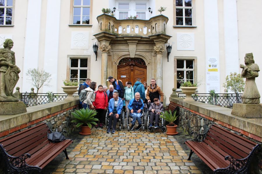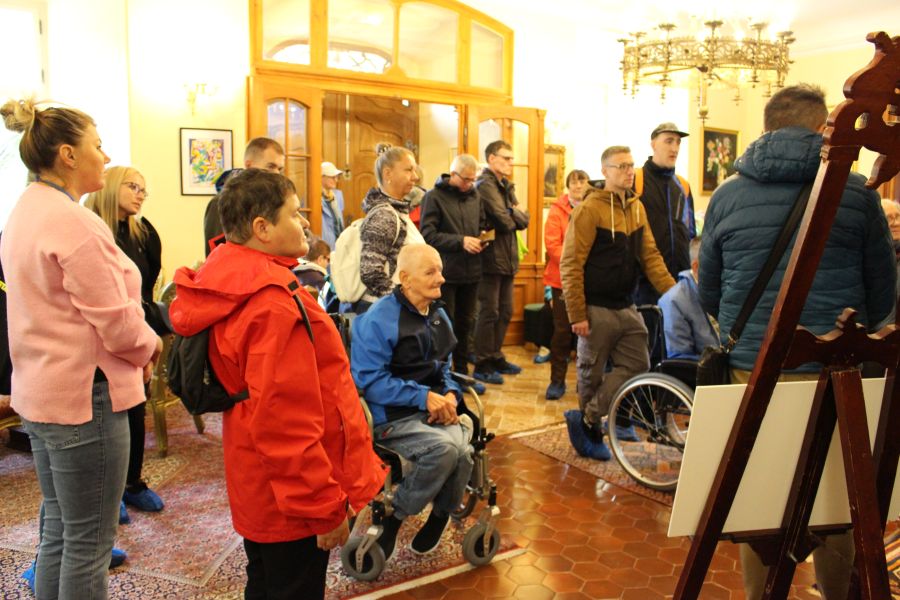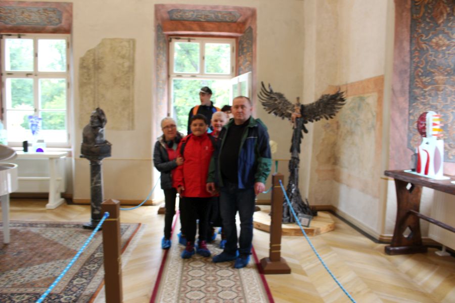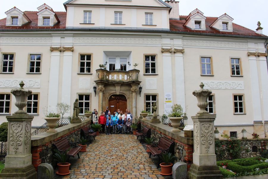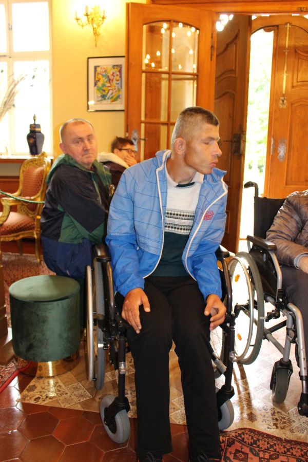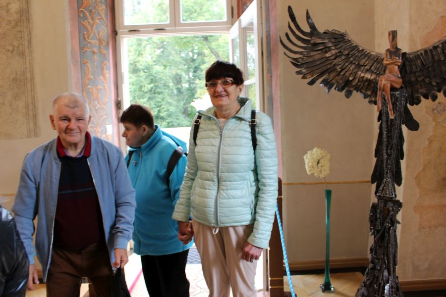 W ostatnią środę mieszkańcy Domu Pomocy Społecznej w Szarocinie udali się na wyjątkową wycieczkę do Pałacu w Ciechanowicach. Podczas zwiedzania pomieszczeń pałacowych mieliśmy przyjemność korzystać z przeuroczej obsługi, która reagowała na nasze potrzeby. Zachwyciliśmy się imponującymi kolekcjami właściciela oraz zachwycającymi freskami, które miały wpływ na decyzję o restauracji całego obiektu. Zachwycał nas tu każdy detal.