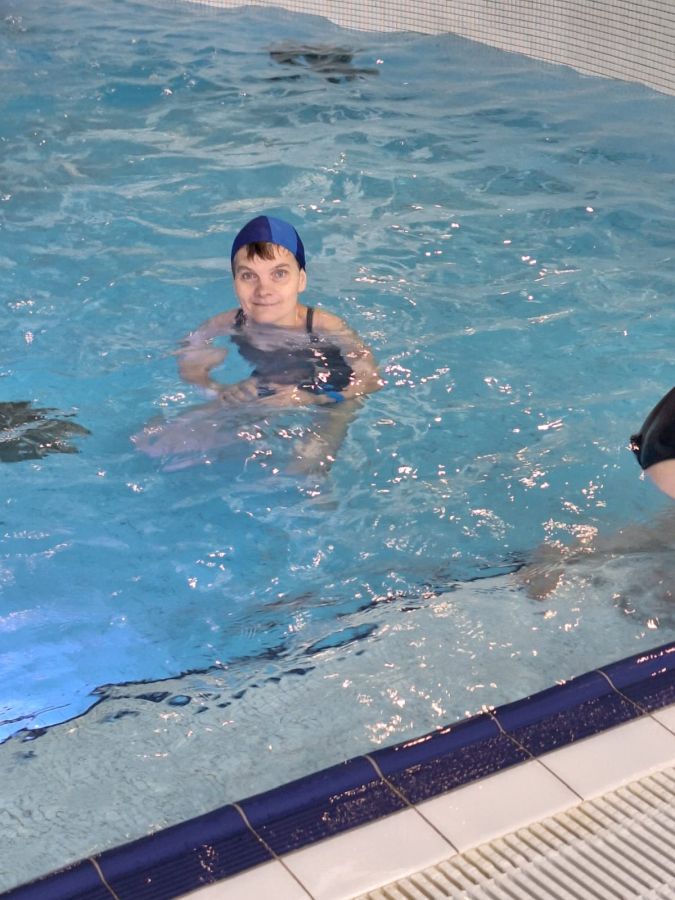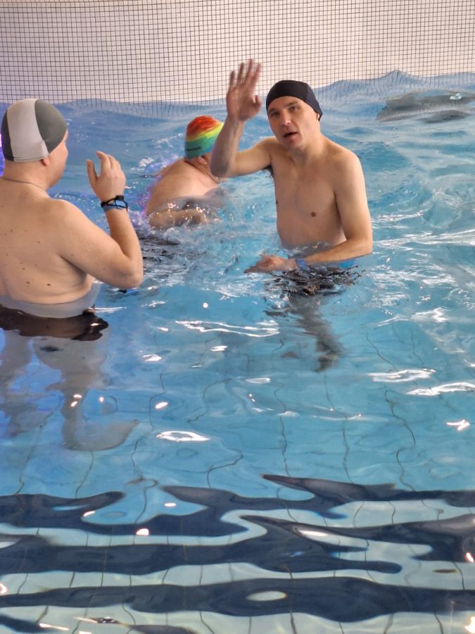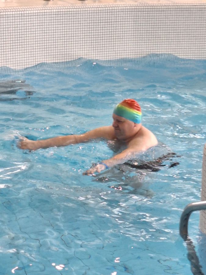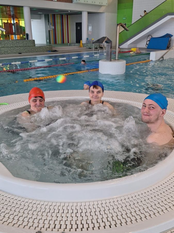 Grupa mieszkańców DPS Szarocin aktywnie spędziła czas podczas treningu pływania na krytym basenie w Wałbrzychu.