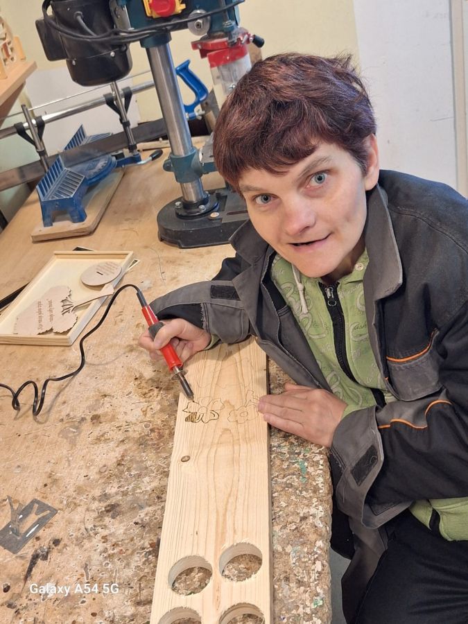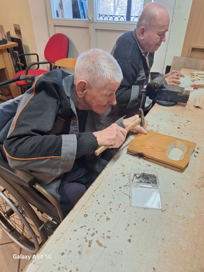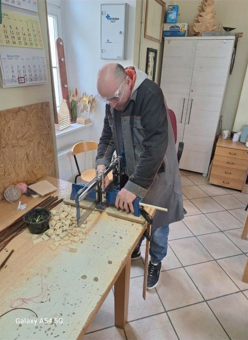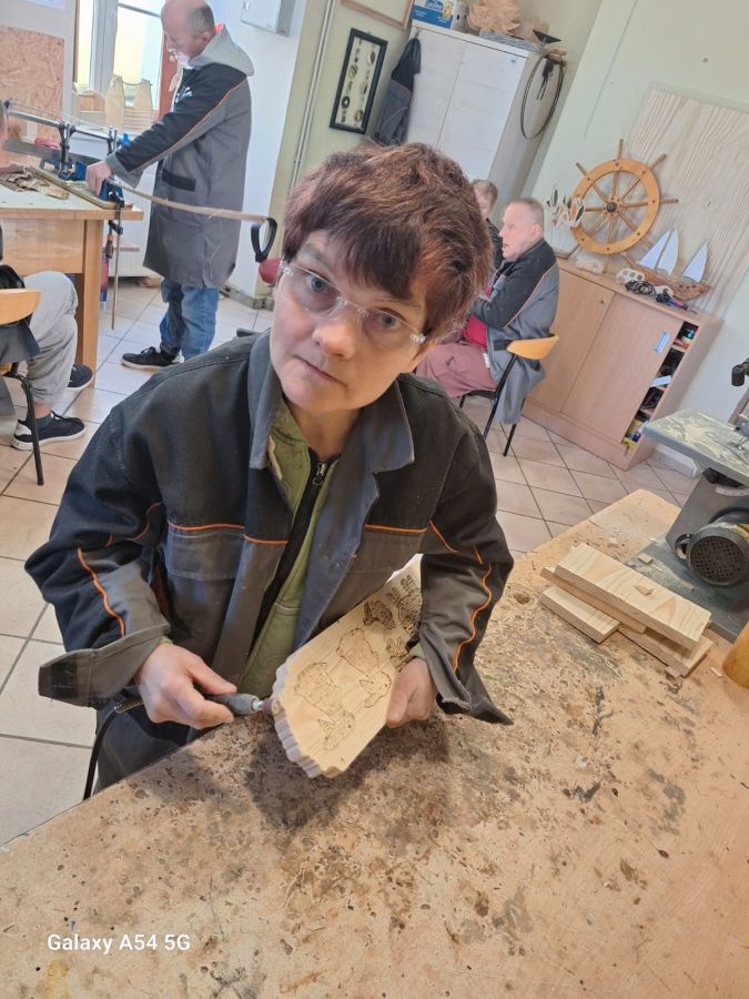 Podczas zajęć w pracowni stolarskiej w ramach terapii zajęciowej w Domu Pomocy Społecznej w Szarocinie uczestnicy mają okazję rozwijać swoje umiejętności manualne i kreatywność. Praca z drewnem wymaga precyzji, cierpliwości oraz zaangażowania, jednak każdy może znaleźć tu coś dla siebie.