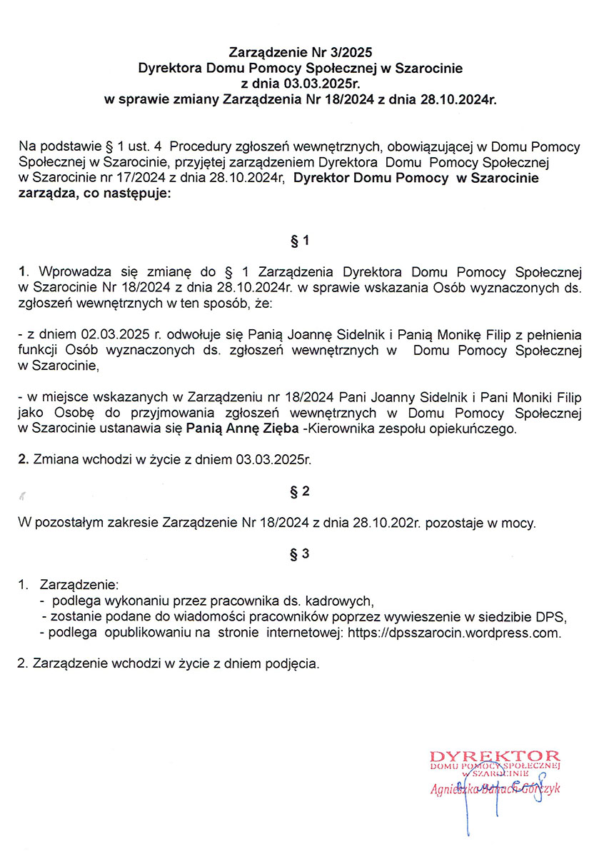 – „Zarządzenie Nr 3/2025 w sprawie zmiany Zarządzenia Nr 18/2024„
